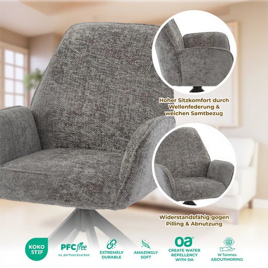 Esszimmerstuhl Dunkelgrau – 360° Drehbar mit Chenille-Stoff