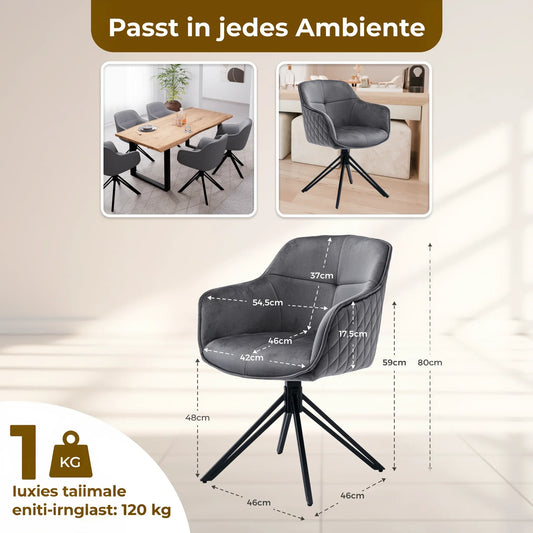 Esszimmerstuhl Dunkelgrau – 360° Drehbar mit Samt-Stoff