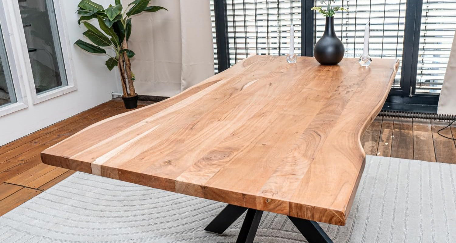 Baumkantentisch Akazienholz – Massivholz Esstisch mit Spider-Gestell