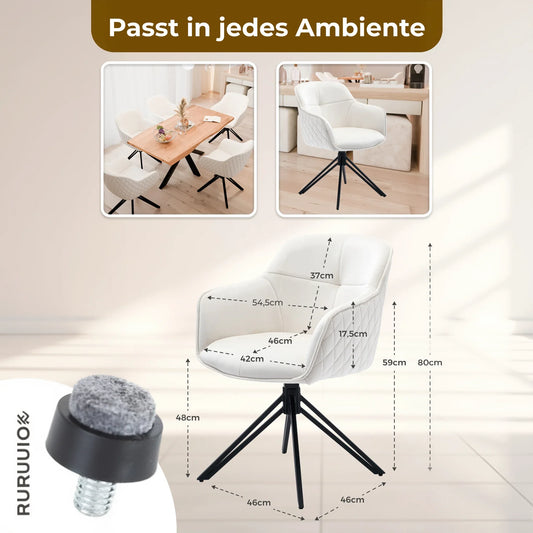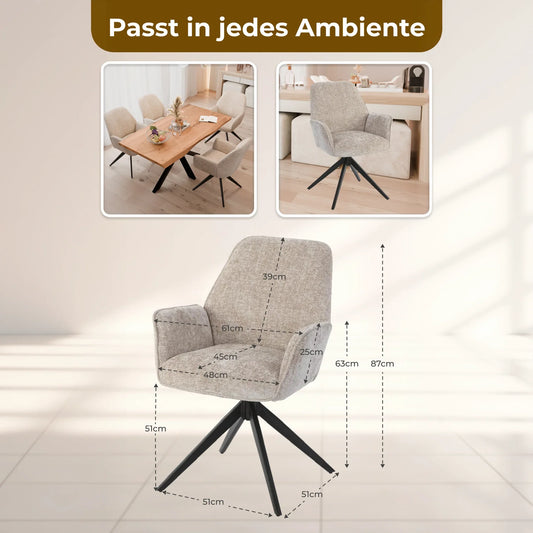 Esszimmerstuhl Beige – 360° Drehbar mit Chenille-Stoff