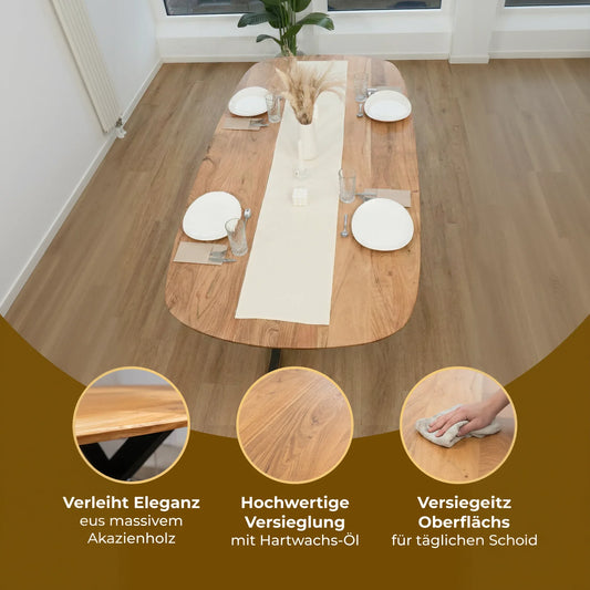Esszimmertisch Oval Akazienholz – Massivholz mit Spider-Gestell